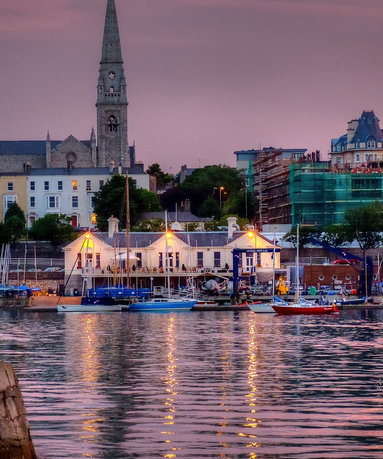Dún Laoghaire (10,9 km): architettura vittoriana e marina ⚓, lungo molo panoramico 🌅, centro con caffè e negozi ☕🛍️